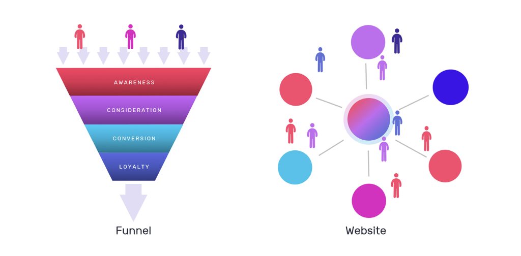 因應渠道、形態的不同與品牌行銷策略的操作變化,透過行銷漏斗展現消費者和品牌的旅程。從顧客開始注意到品牌/企業的初始階段到購買階段,會完整映射到轉化及以後的路線。
